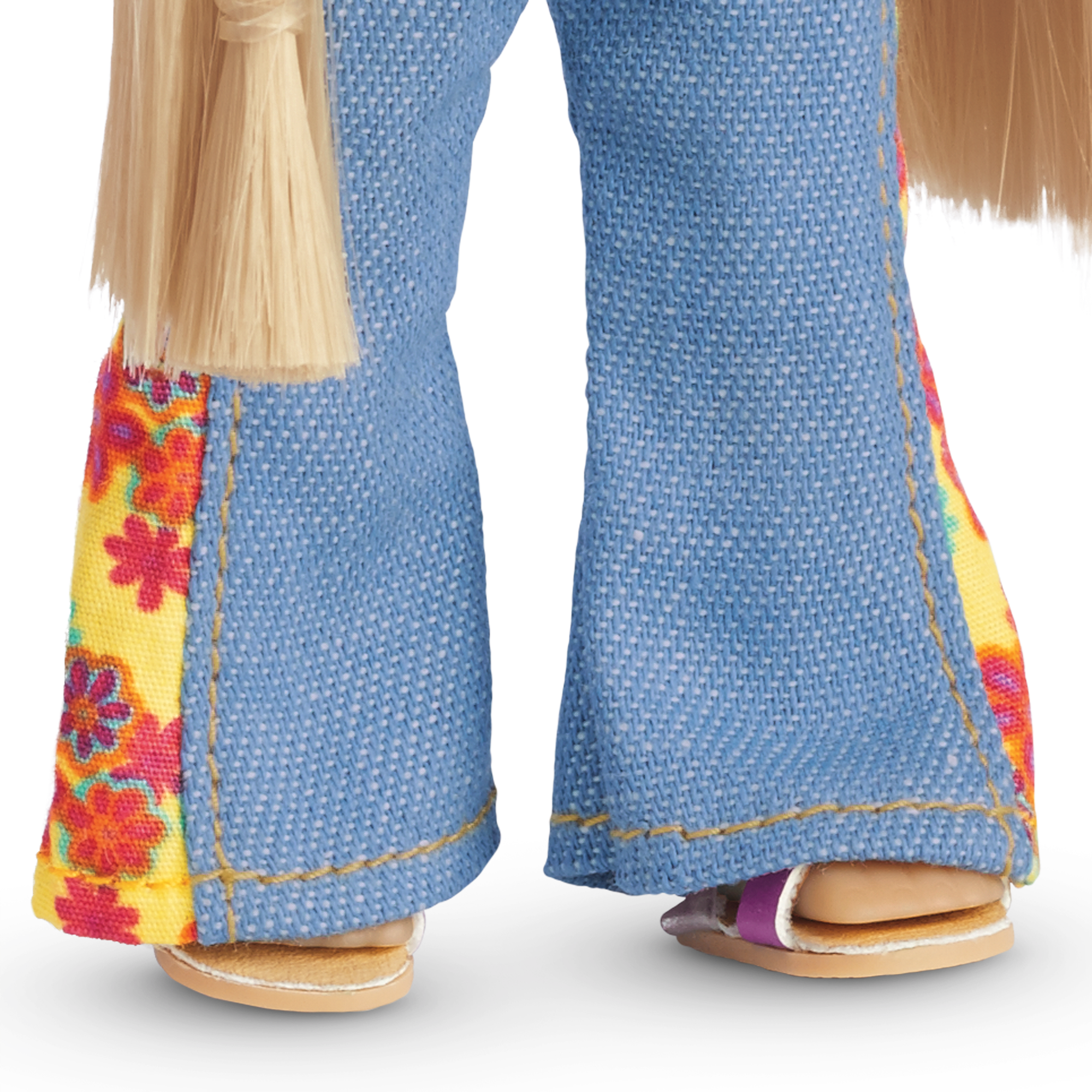 The 6.5″ (16.5 cm) Julie mini doll has warm brown painted eyes and shiny blond hair. Her smooth vinyl limbs are posable. She arrives in a tiny version of Julie’s authentic ’70s outfit featuring a crocheted vest, a peace-sign tank top, and jeans. Includes a mini abridged version of the book The Big Break.
