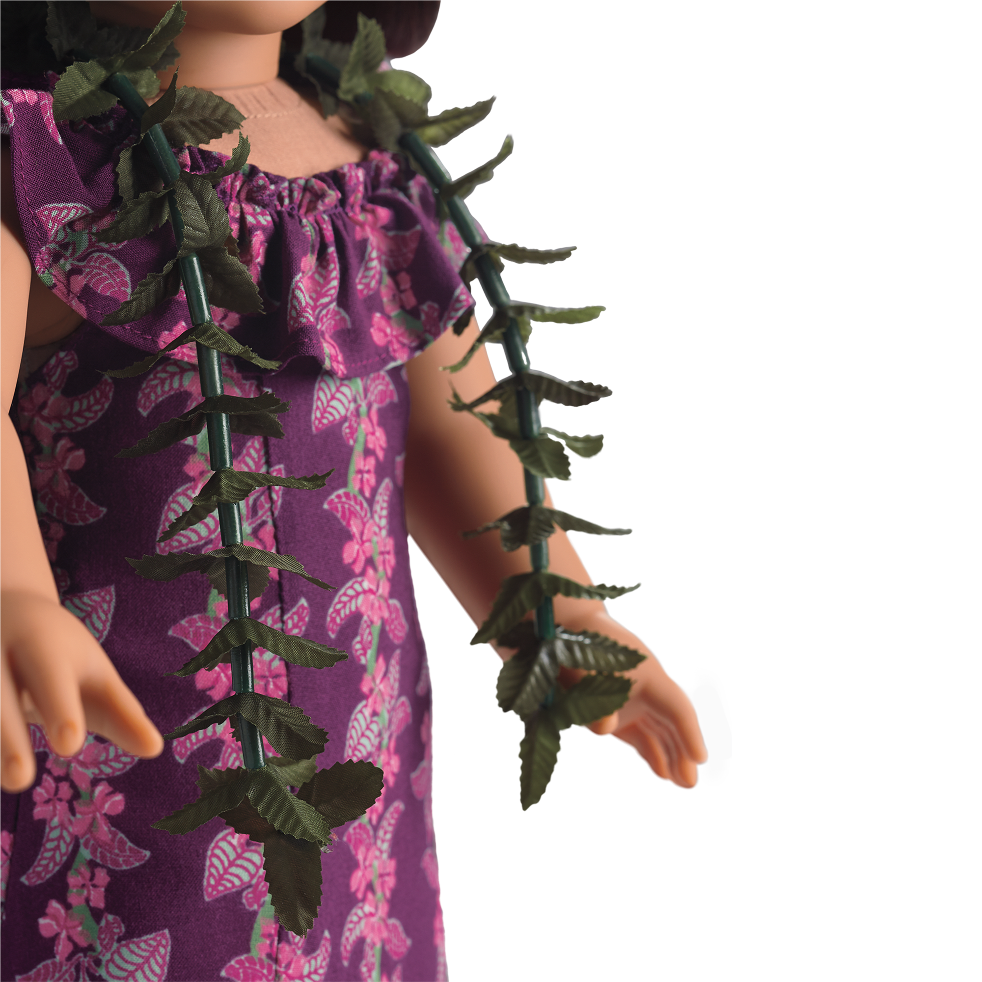 Nanea feels very grown-up in this special hula costume that has a long train for slower dances. She wears it to perform at the USO. This set includes: